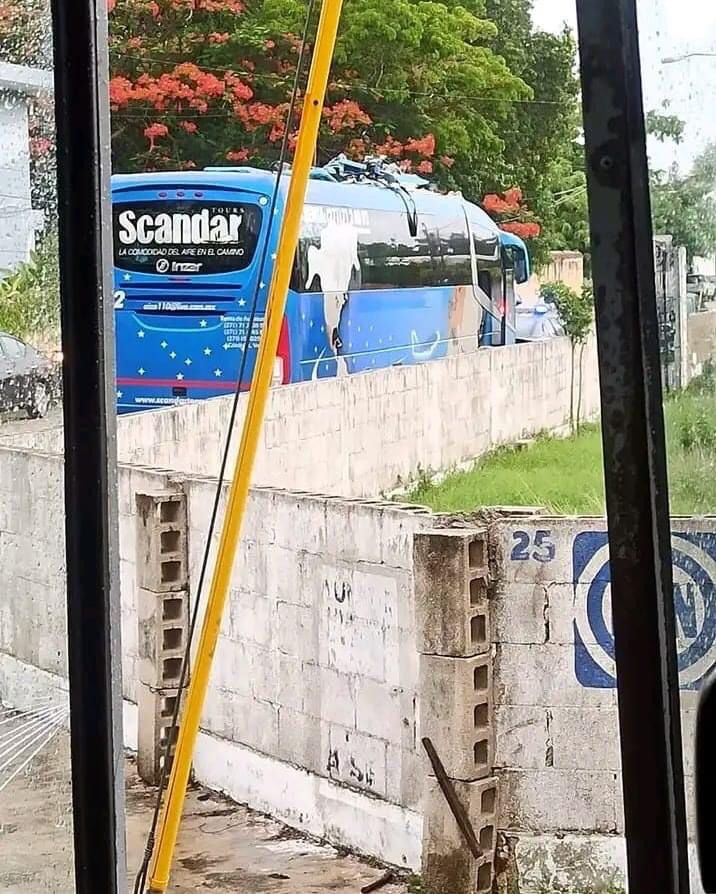 Un autobús de turistas se quedó atorado en el recién mejorado Paso Deprimido en la ciudad de Mérida, Yucatán.