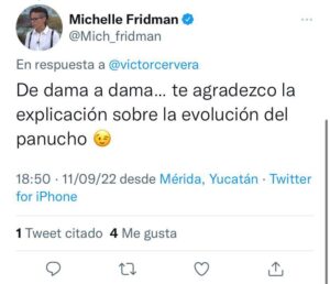 -“De dama a dama…te agradezco la explicación sobre la evolución del panucho”, le respondió la funcionaria vía Twitter al político, luego de que éste le corrigiera su ignorancia sobre la comida yucateca y sobre la escritura de los municipios.