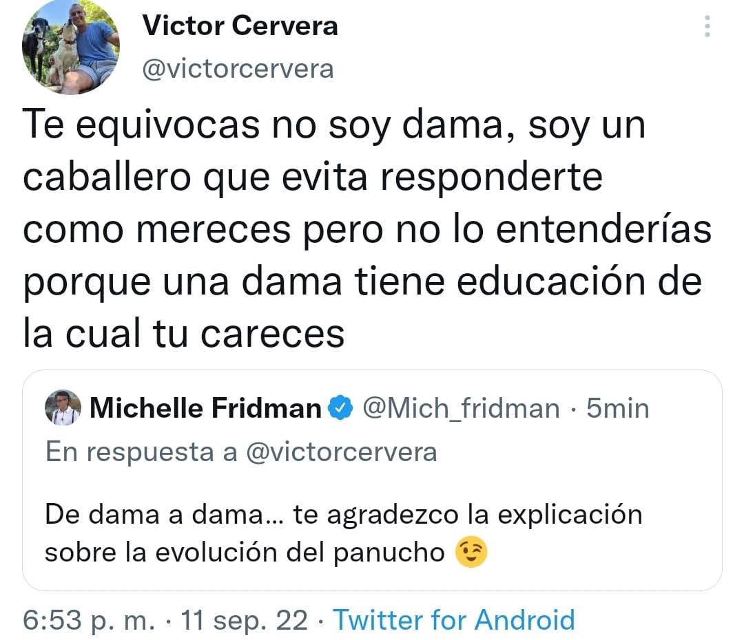 “Te equivocas no soy dama, soy un caballero que evita responderte como mereces, pero no lo entenderías porque una dama tiene educación de la cual tú careces”, le respondió en su tuit.
